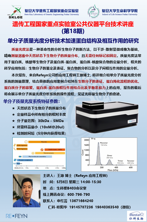 国重平台第18期技术讲座-单分子质量光度分析技术加速蛋白结构及相互作用的研究